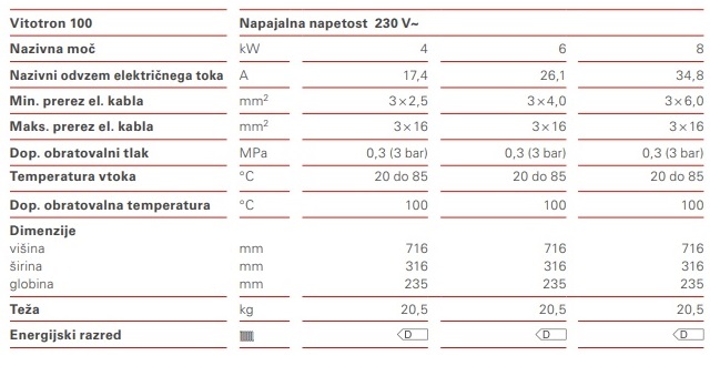 - Maksimalni obratovalni tlak kotla 3 bar.