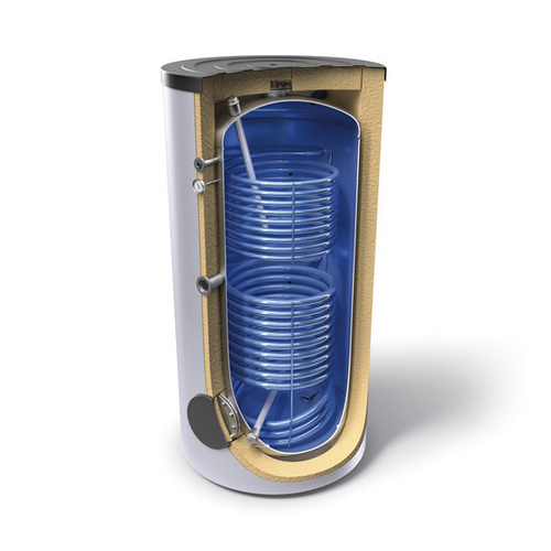 - Dva izmenjevalca omogočata priklop na različne vire energije, kot so solarni sistem, kotel na olje, plin ali trda goriva.