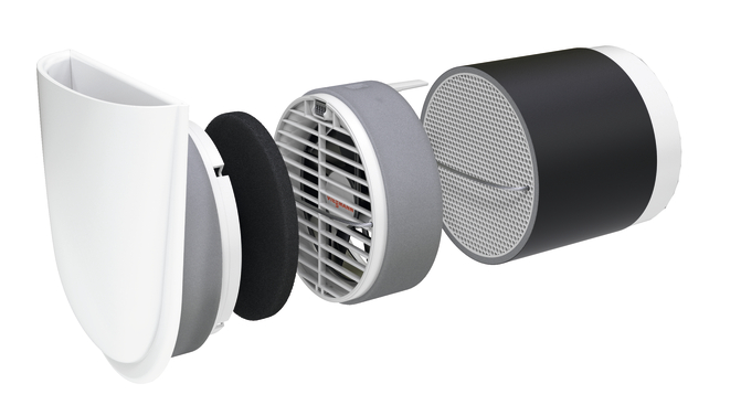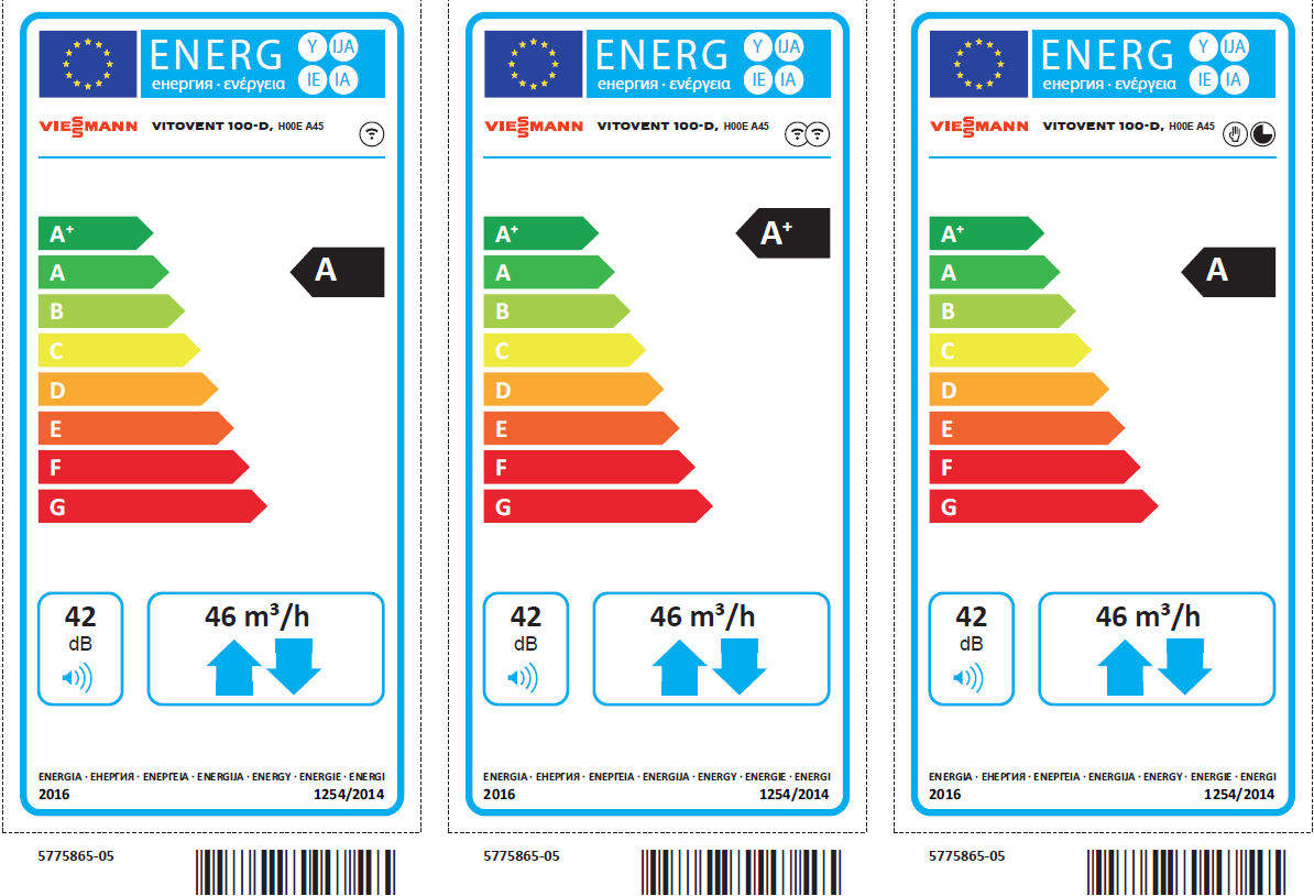 - Z ventilatorjem, hranilnikom toplote, notranjo stensko zaslonko bele barve, ki je zvočno in pretočno optimirana, in grobim filtrom.